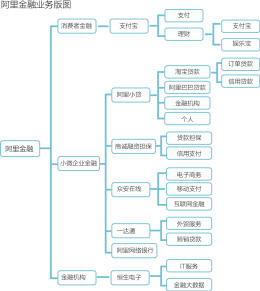 随着阿里金融的不断发展,其目前已大致形成了消费者金融和小微企业金融服务两大板块,有支付宝、阿里小贷、商诚融资担保、招财宝等业务,涵盖保险、担保、支付、信托等多个金融板块。长远来看,以数据和信用为核心面向消费者和小微企业的业务延伸,阿里将走得更远。