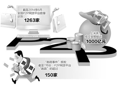 P2P网贷平台发展“冰火两重天”的状况引发了市场关注。一方面是行业的高速成长:《中国互联网金融报告(2014)》显示,截至2014年6月,全国 P2P网贷平台数量达到1263家,上半年成交金额近1000亿元,预计全年累计成交将超过3000亿元;一方面是频繁发生的“跑路事件”:截至7月份,P2P网贷平台“跑路”的企业超过150家,去年以来几乎平均每个月都有六七家P2P平台“跑路”。