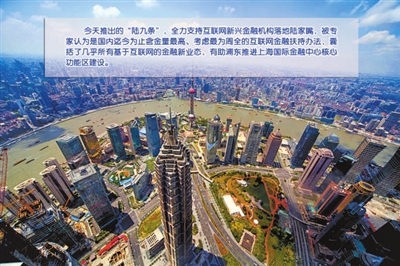 根据“陆九条”,陆家嘴互联网新兴金融产业园暨创新孵化基地,将重点发展基于互联网及移动通信、大数据、云计算、社交平台、搜索引擎等信息技术,主要集聚互联网金融、第三方支付、对冲量化、私募基金、财富管理、融资租赁、融资担保、小额贷款、商业保理、金融服务、各类金融机构子公司等新兴金融企业,以及对上述企业有控制力的金融类投资控股公司、为金融机构提供资讯、评级、评估、征信、咨询等专业服务的机构。