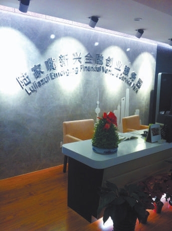 去年10月份设立的陆家嘴新兴金融创业服务园,目前已陆续迎来相关企业的入驻。在生命人寿大厦32层,记者看到,上海网易小额贷款有限公司、财宝巷互联网金融信息服务有限公司和佰贷金融信息服务(上海)有限公司等企业均已入驻。同时,上海浦东陆家嘴互联网金融协会也坐落于此。