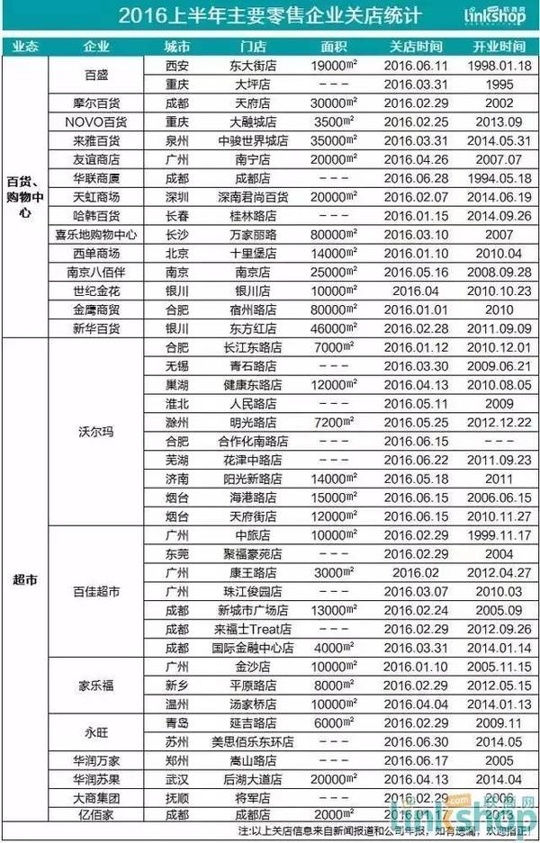 2016年上半年实体店阵亡名单