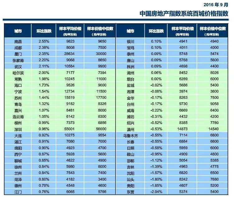 统计发现,全国百城里,已有24个城市住宅平均价格过万,32个城市低于6000元。