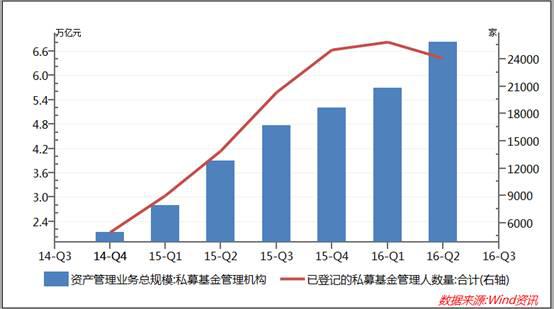 统计数据显示,最近三个季度以来,私募基金产品成立数量和规模均逐步增加,截至2016年8月底,基金业协会已登记私募基金管理人17085家。已备案私募基金39704只,认缴规模8.03万亿元,认缴规模比肩目前公募基金的规模。