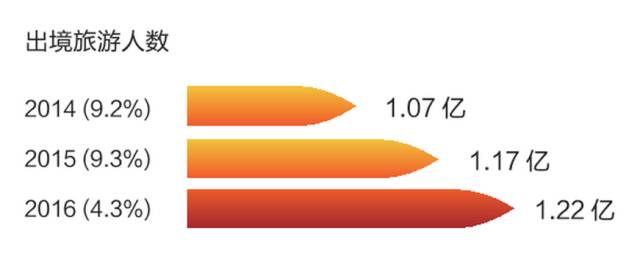 2016年中国出境旅游花费高达1098亿美元,人均花费900美元,相当于海湾石油富国科威特一年的GDP(2015年1130亿美元)。