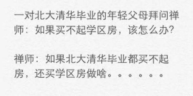 禅师答:如果北大清华毕业生都买不起房,还买学区房干啥?