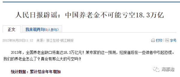 说我们养老金亏空那是造谣,看,《人民日报》早就辟谣了!