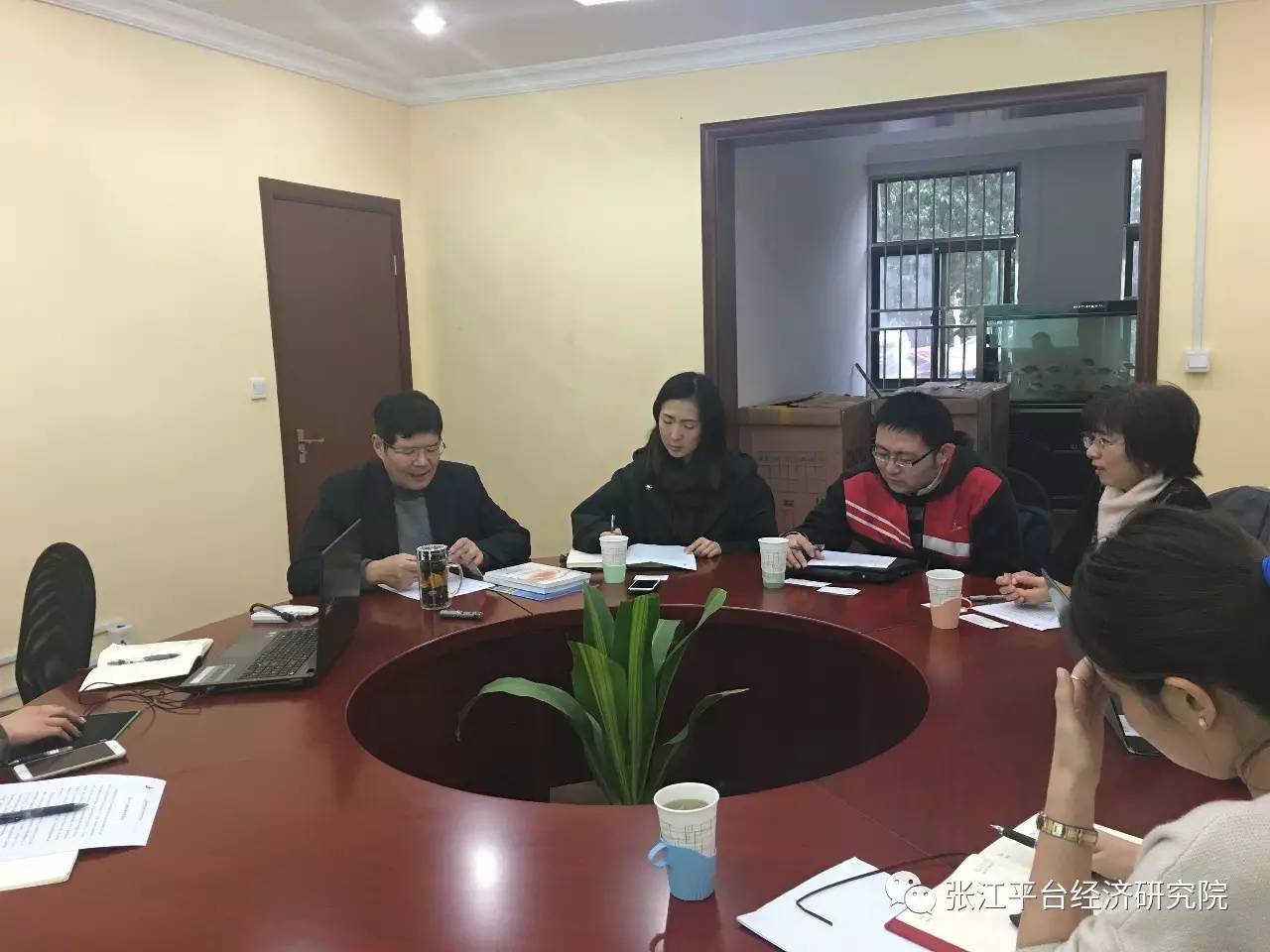 陈炜院长对杨主任一行新年伊始冒雨前来调研表示欢迎,并简要报告了张江平台研究院两年来的研究工作。研究院成立于2014年6月,由陈炜院长和平台经济行业的代表性企业共同发起设立,研究院理事单位有一号店、东方钢铁、沪江网、喜马拉雅、普兰金融、河马动画、禹容网络、绿谷制药、药明康德、尚华医药等40多家知名创新企业。研究院成立以来,特别是近两年来,在发挥智库功能上取得了三方面进展:一是原创一批有影响力的决策成果,落实新型智库的功能。两年来,平台经济研究院承担市和新区政府委托的研究报告30项,上报专报50多篇,得到市和新区主要领导在内的市、区级领导批示58个。二是依托科学家、企业家、投资家共同研究,塑造自贸区、科创中心和人才双创决策咨询研究的最接地气专业智库特色。所有的研究报告都来自于深入调研,都集中了科学家、企业家、投资家的智慧,代表了创新主体参与决策的话语权。特别是在《药品上市许可人持有制度试点方案》、《“双自联动”推进方案》、《人才双创案例调研》、《集成电路全程保税产业链试点方案》、《跨国研发中心溢出效应》等课题研究上,取得了具有影响力的研究成果,转化为国家和市的改革创新决策。三是在市委和区委组织部、张江管委会等支持下推进独立第三方的自主经营,在资金、人才等资源支撑上有效依托市场机制。研究人才完全市场化招聘,以灵活机制打造一支年轻化、专业化研究团队,以事业吸引人,以学习型组织培养人,以成长空间激励人。研究经费完全来自于客户委托的项目,以高性价比的研究成果赢得客户信赖,并接受张江管委会的年度考核,增强新型智库的品牌效应。岁末年初,研究任务饱满,正在积极推进《两大国家战略联动融合》等6个在研项目的调研。