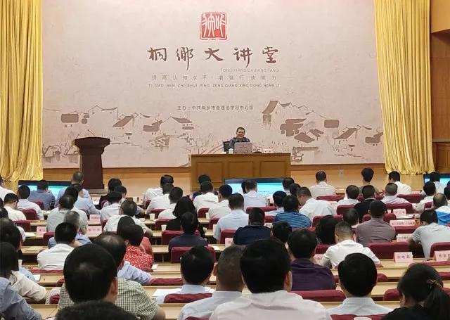 当天晚上,应桐乡市市委书记盛勇军的邀请,陈炜院长为桐乡市600多名委办局和乡镇领导作了为时2小时的报告,题为《建设科创中心、引领培育发展新动能》,就张江转型发展经验及张江与桐乡的创新一体化合作进行了交流。会上,陈炜院长还赠送了由其主笔的《张江模式》一书,与市委、市政府主要领导进行了面对面交流,回答了市科技局局长和乌镇党委书记有关科创与人才、乌镇在互联网经济中的功能定位等提问。